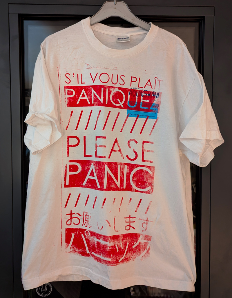 "LE FUTUR SERA FORCEMENT COMPLÈTEMENT PARANOÏAQUE"Tee-shirt "M" de base "GILDAN - SOFTSYLE" gris, sérigraphié par mes soins en BLANC et NOIR. Il existe en deux exemplaires, celui-ci et celui que je porte. 20 € (+5€ de FDP) |