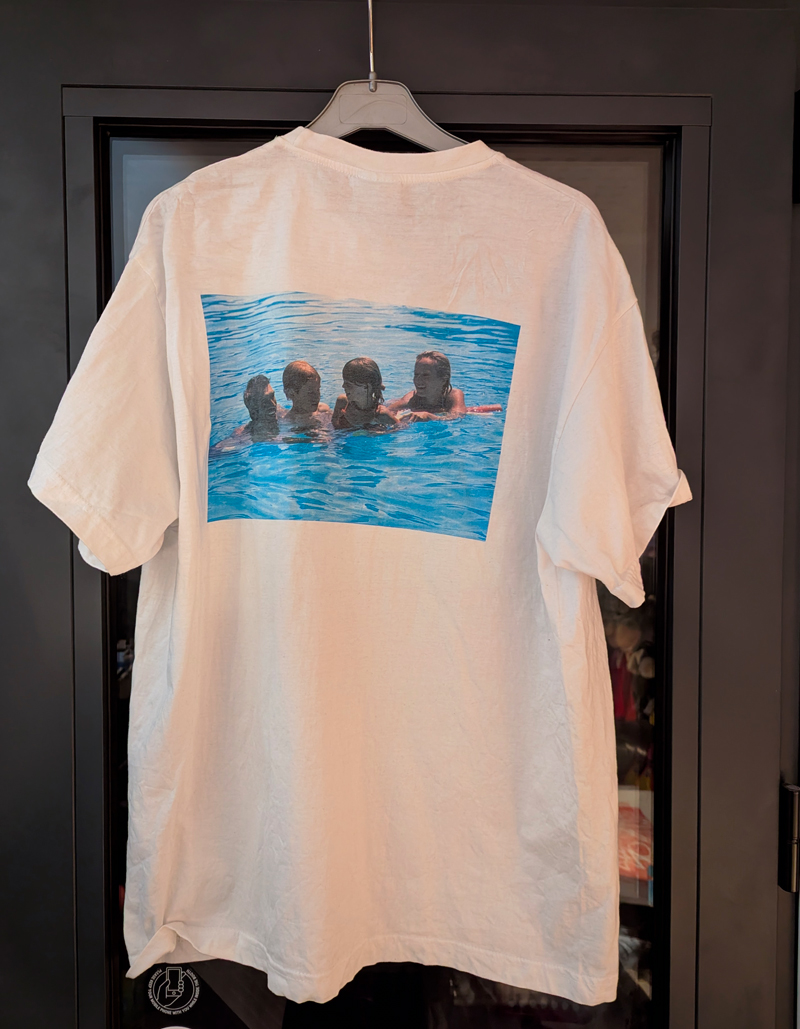 "WOKE OK"Tee shirt XL de récup d'une marque de chlore ou je ne sais quoi FACE sérigraphié par mes soins "WOKE OK" et dos : 4 personnes dans une piscine. 10 € (+5€ de FDP) |